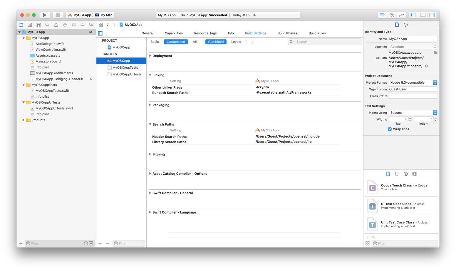 /Users/Guest/Projects/openssl/includeto Header Search Paths - Add